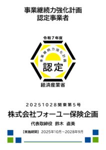 取引銀行である筑波銀行を介して、「事業継続力強化計画」の認定を受けました。